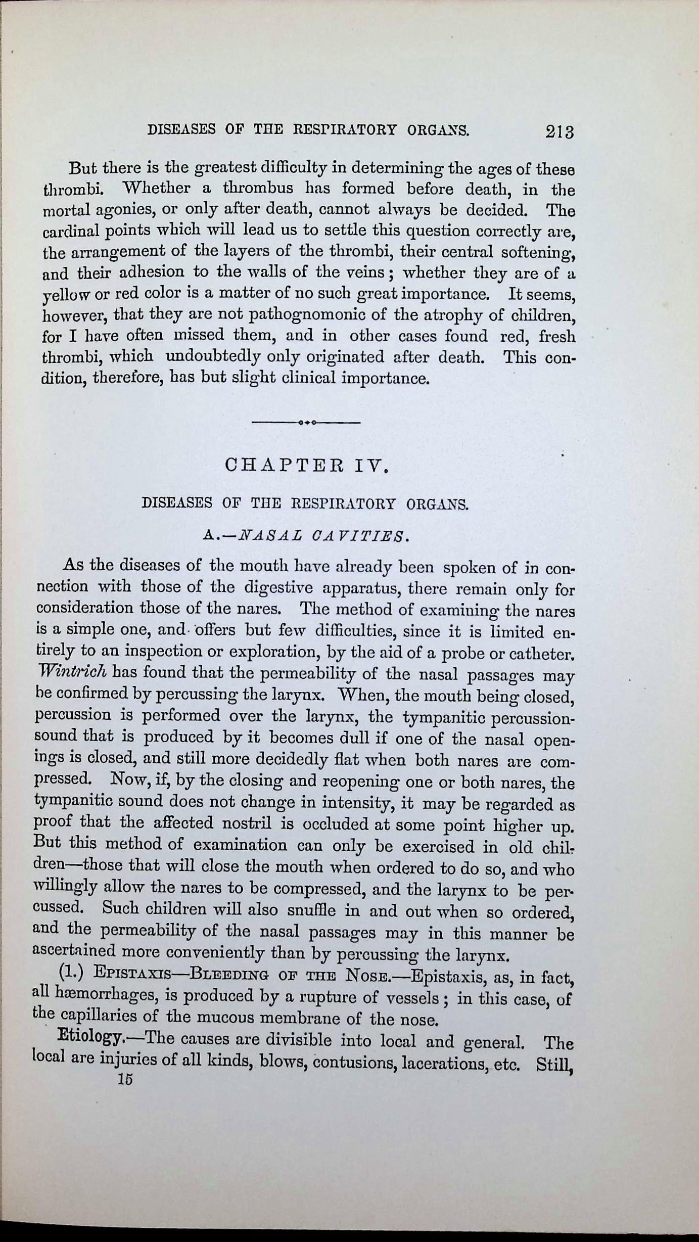 The book describes conditions such as “epistaxis” (nosebleeds) and “infantile circulation” in language that mixes anatomy with clinical observation.