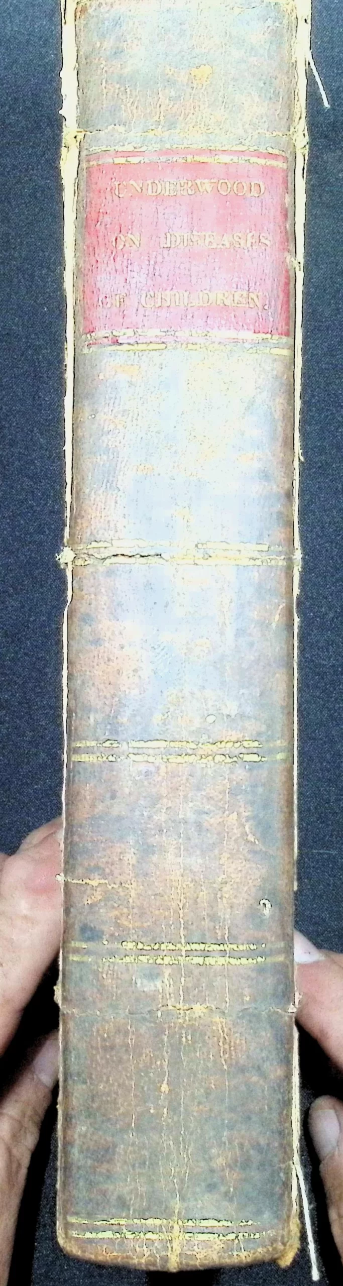 Antique 1806 edition of Michael Underwood’s Diseases of Children, full leather binding with red spine label.