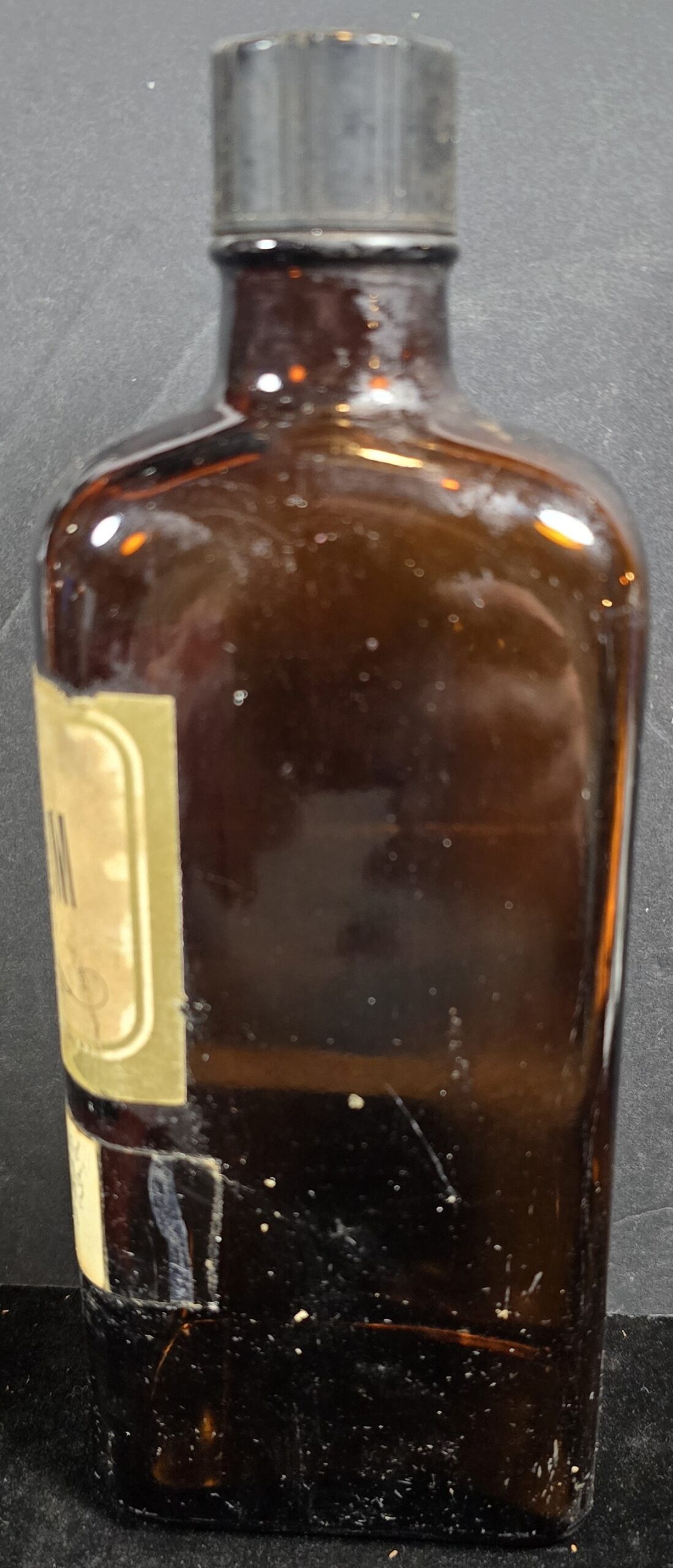 This small amber glass bottle labeled “Acetonum” was produced by Sharp & Dohme, a major American pharmaceutical and chemical manufacturer active before its 1953 merger with Merck & Co. “Acetonum” is the Latinized form of acetone, a volatile solvent used extensively in medical and laboratory settings throughout the early 20th century.