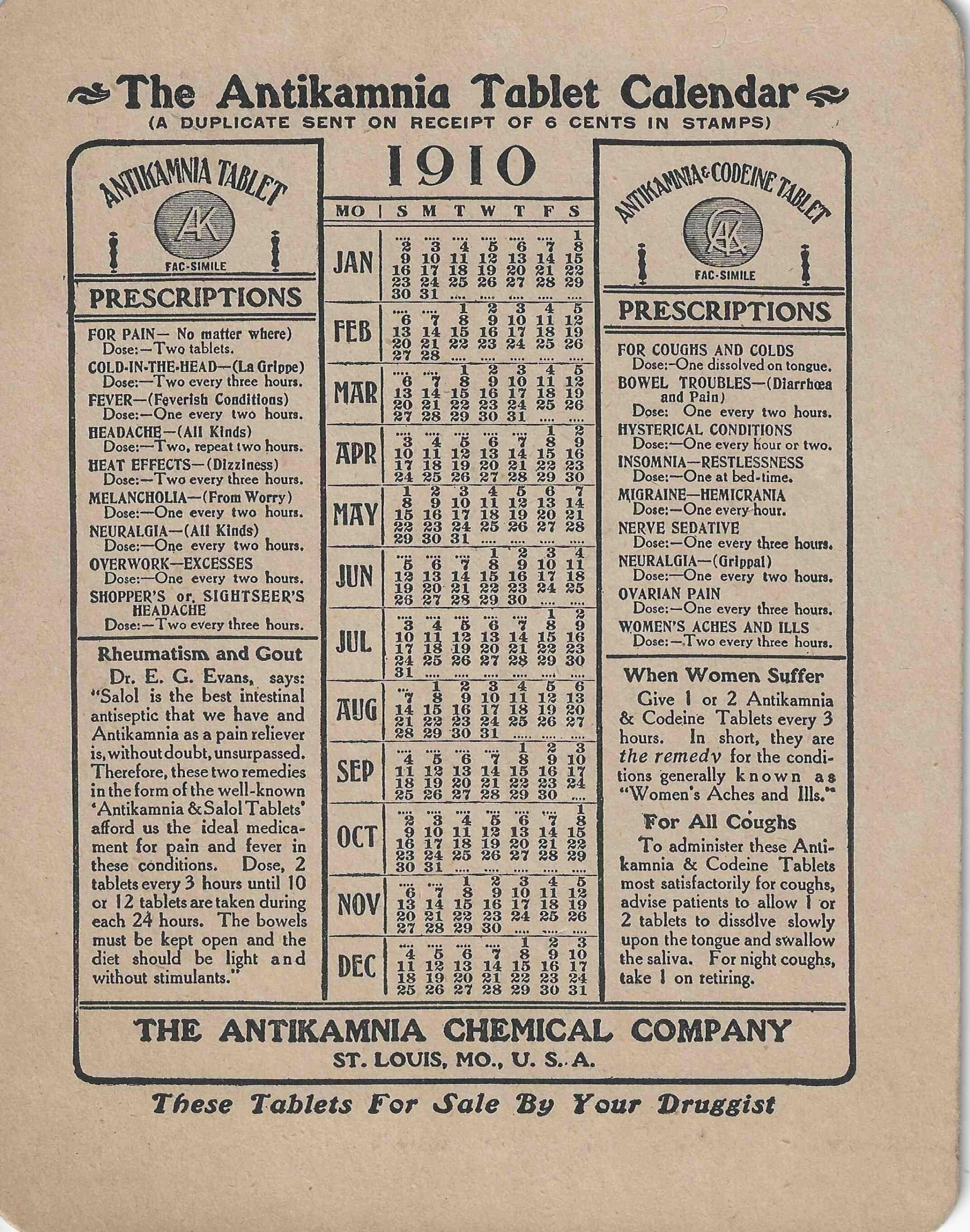 – Antikamnia Tablet Calendar, 1910