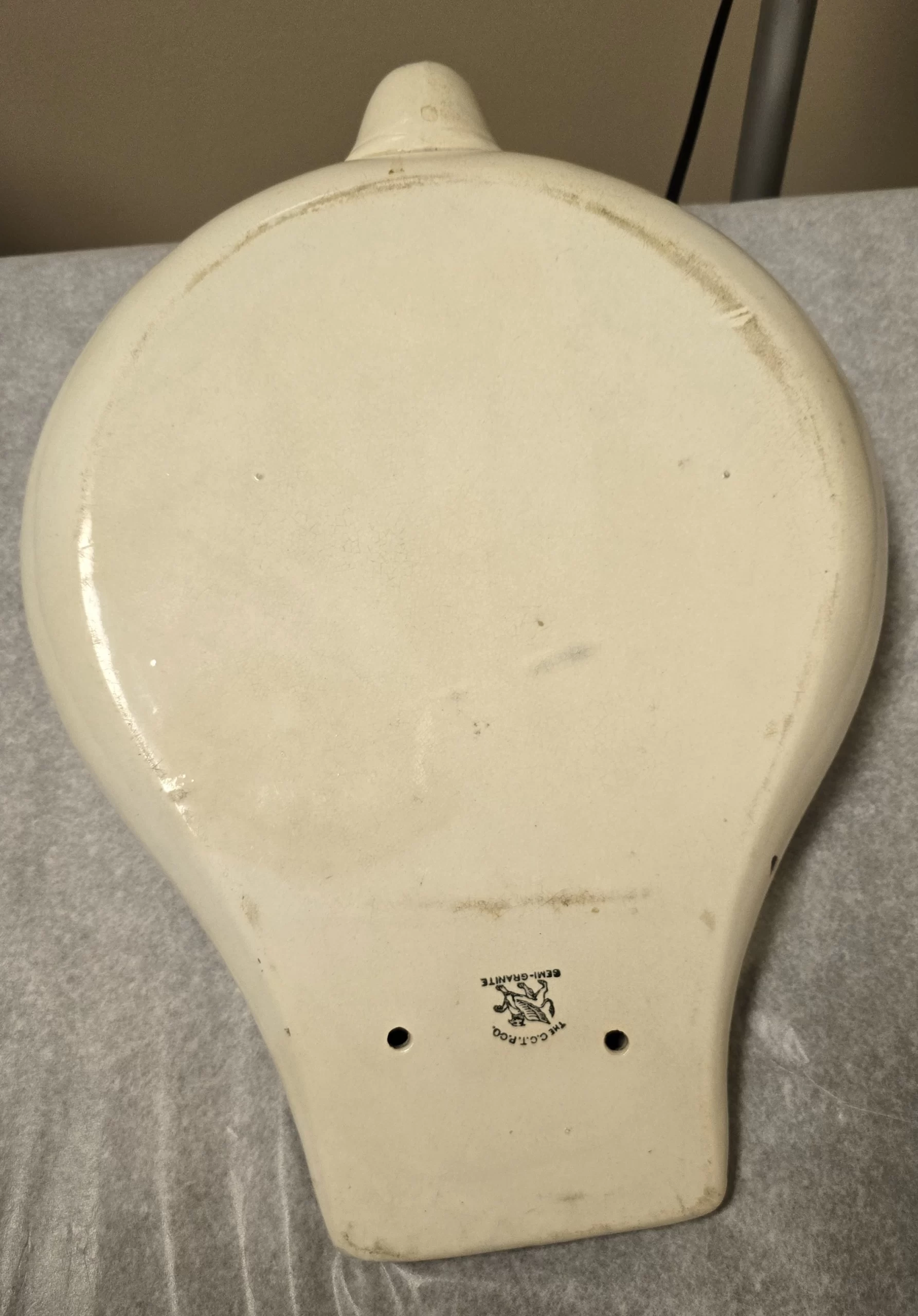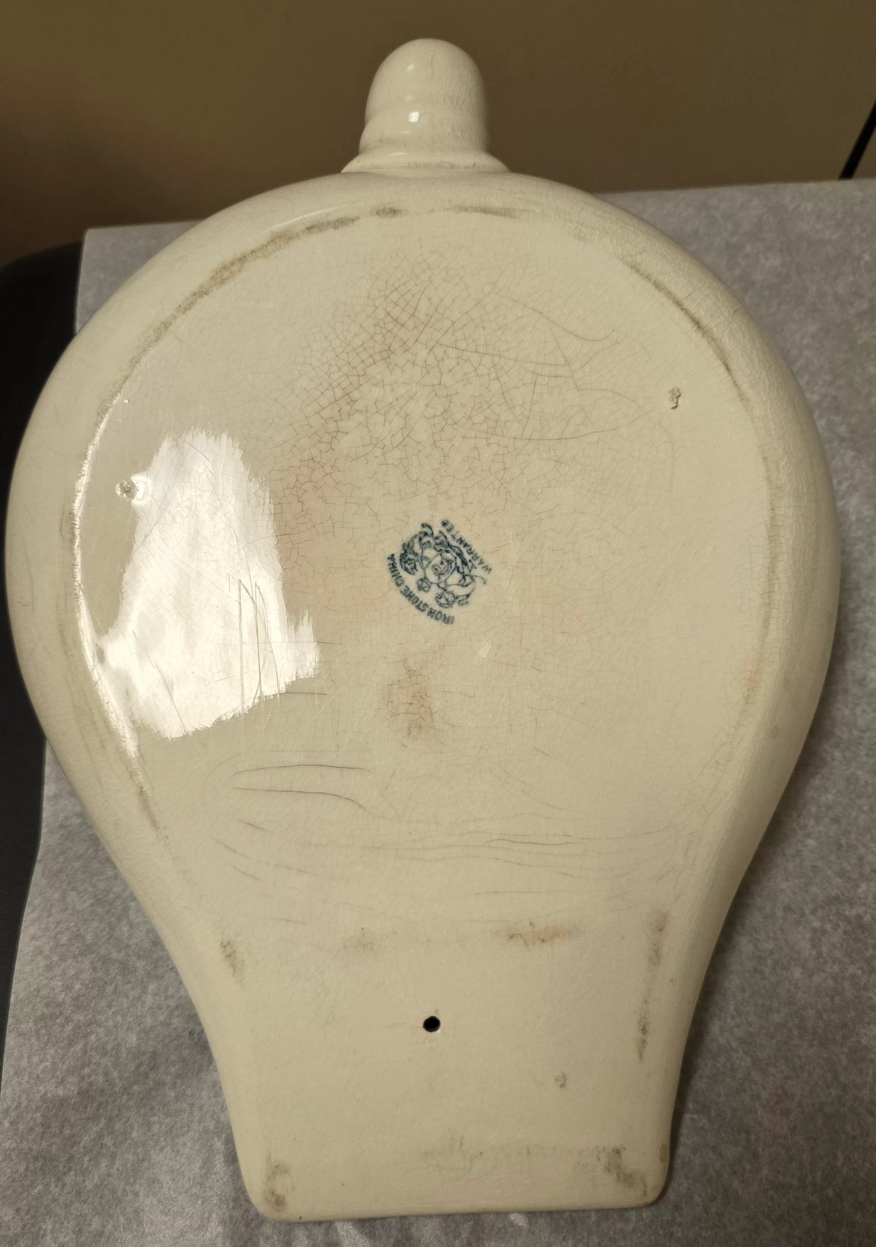 “Ironstone China” wasn’t specific to bathroom items — it referred to a type of vitrified, durable ceramic that was used for everything from teacups to toilets. Its use in medical equipment highlights just how much overlap there was between household and hospital manufacturing in the 1800s.