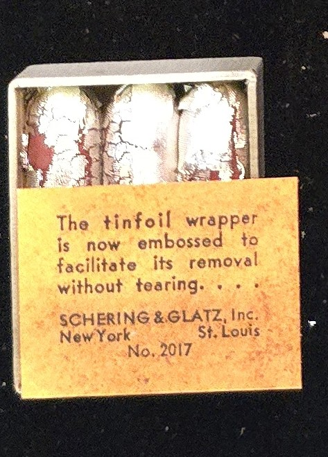• Suppositories remain, though foil wrappers have flaked and deteriorated with age.