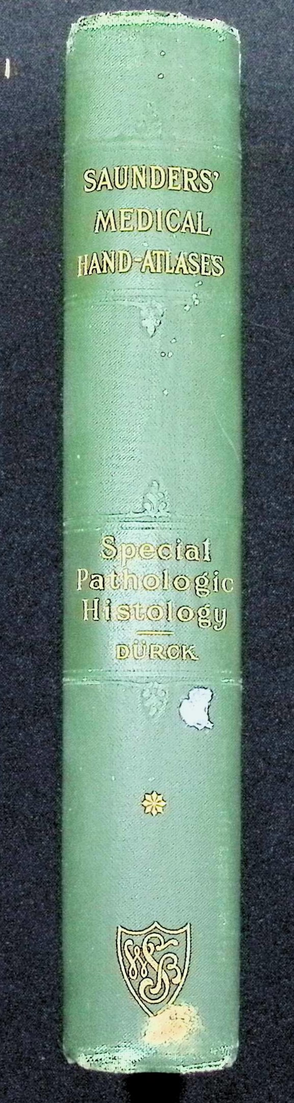 Green cloth spine with gilt title “Saunders’ Medical Hand-Atlases – Special Pathologic Histology – Dürck”