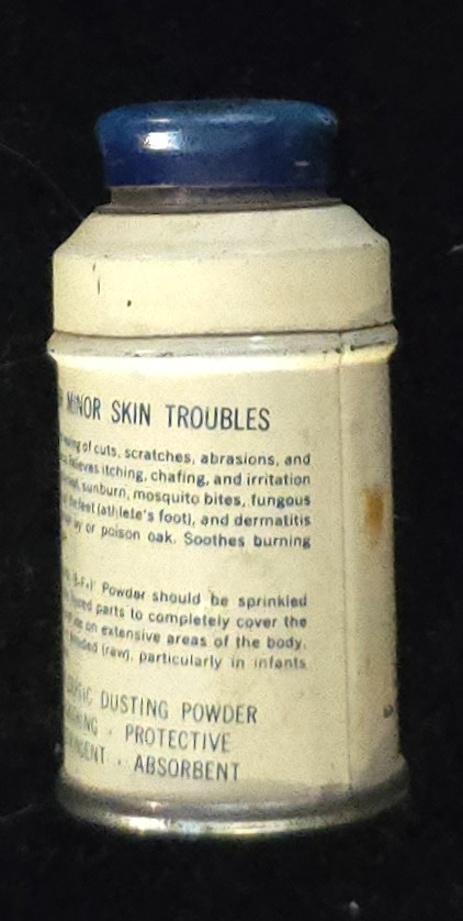 This tin was preserved as a representative example of mid-20th-century antiseptic and surgical first-aid products. Its combination of bismuth salts, menthol, and thymol bridges the gap between traditional antiseptics and modern wound powders, illustrating the evolving approach to infection control before antibiotic dominance.