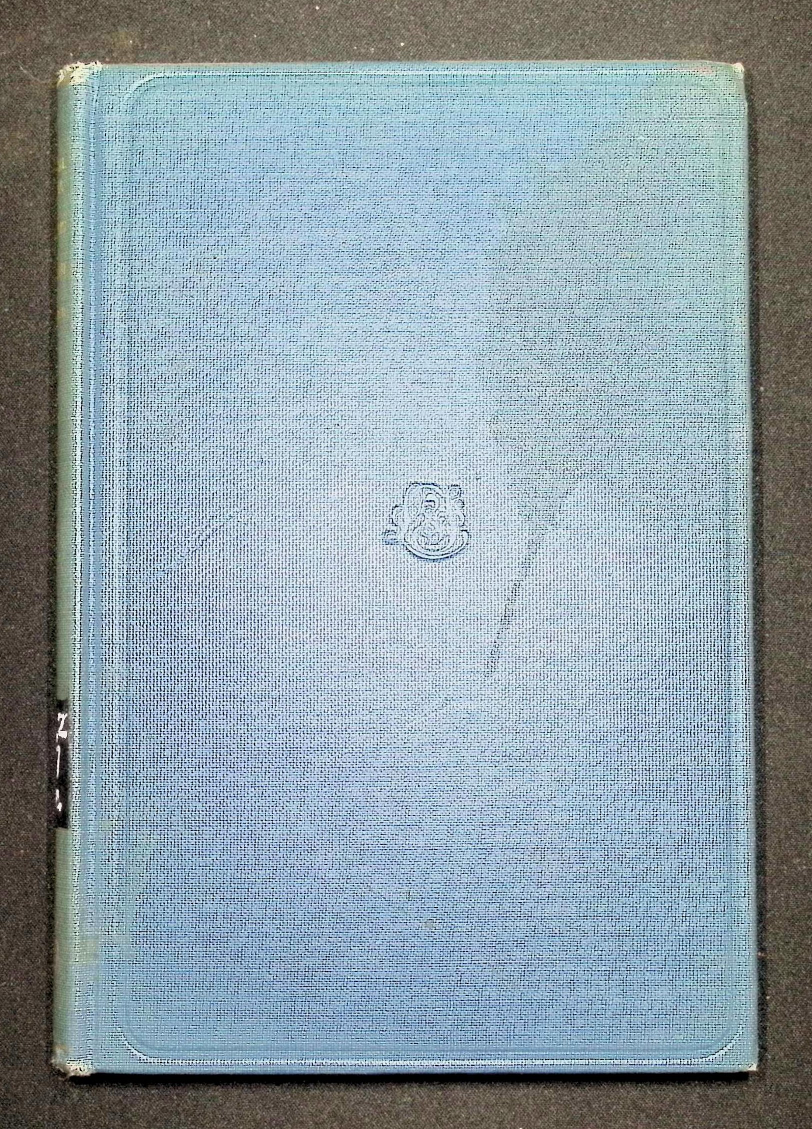 Blue cloth hardcover with moderate shelf wear; corners lightly rubbed; old library call-number tape on spine; binding sound; pages clean and well-preserved.