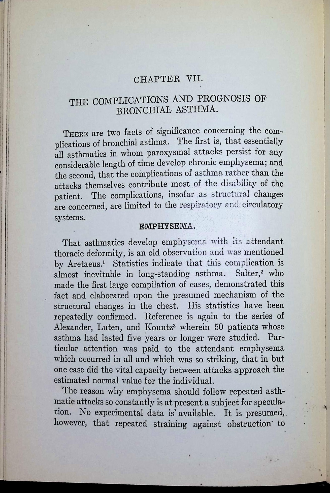 The emphysema chapter highlights early observational epidemiology, long before imaging or pulmonary function testing were widely available.