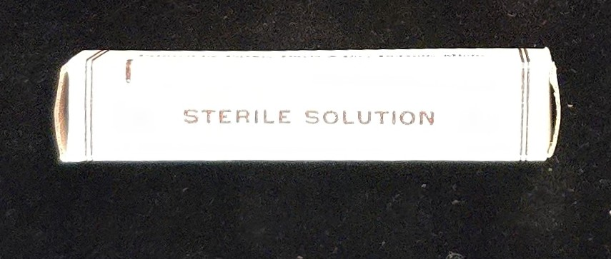 Original glass ampoule in excellent preserved condition, still sealed. Accompanied by the labeled cardboard packaging, showing light age-related wear but clear printing.