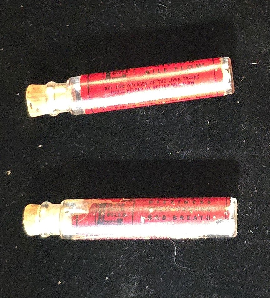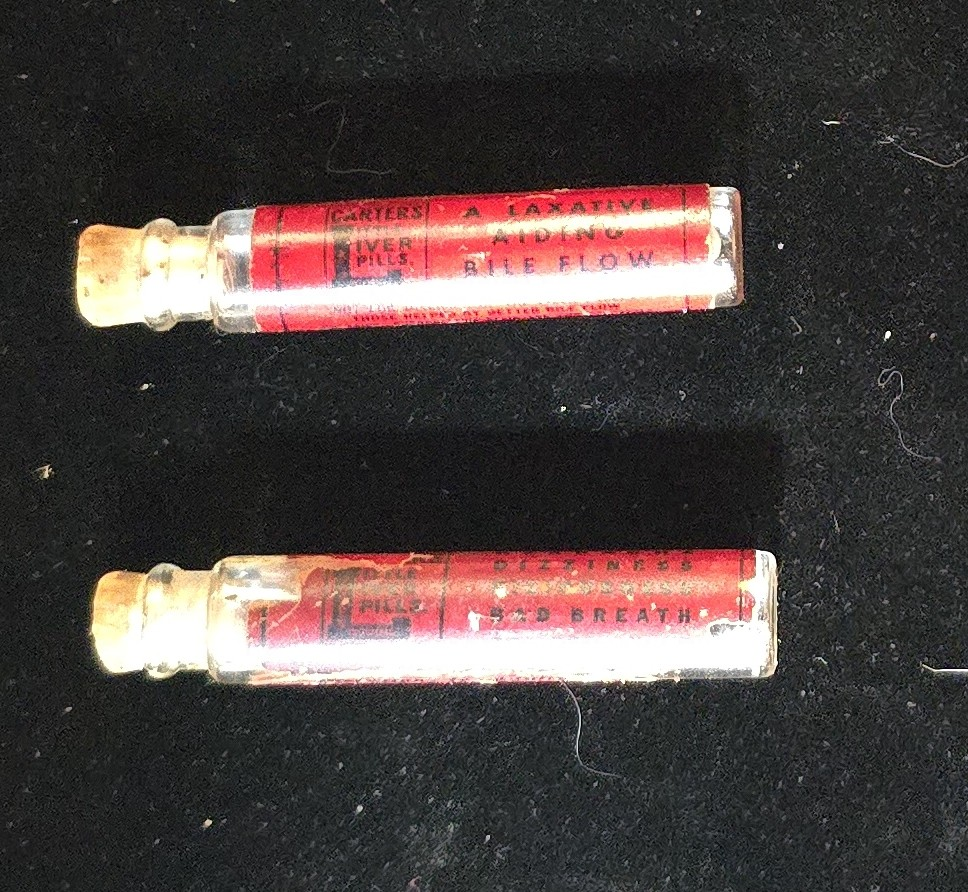 These glass vials once contained Carter’s Little Liver Pills, one of the most famous patent medicines in American history. First introduced in 1868 by Samuel J. Carter, the pills were widely marketed as a cure for sluggish liver, constipation, dizziness, headaches, and even “bad breath.”