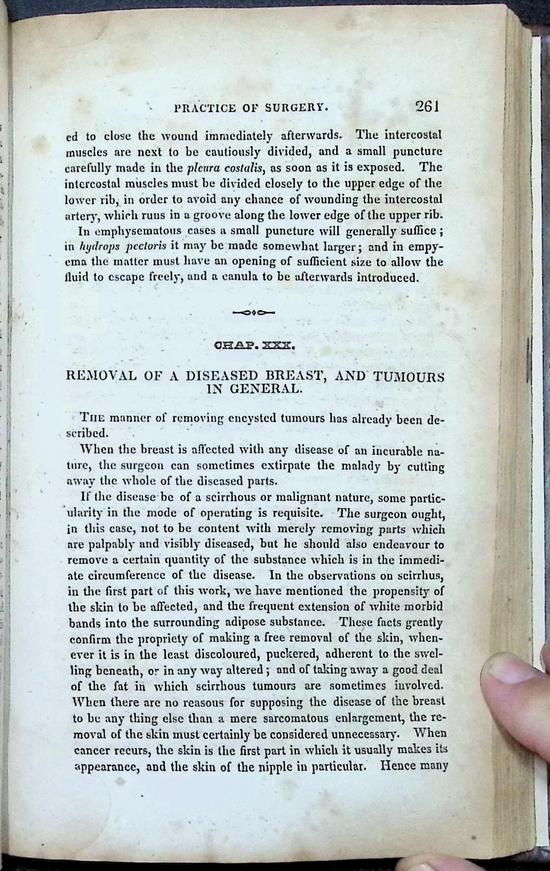 “In cases of scirrhus or cancer of the breast, the earlier the removal of the whole diseased mass is undertaken, the greater the chance of preserving life… The surgeon must proceed with a firm hand, making an elliptical incision which entirely includes the tumor, and continuing the dissection until the whole of the morbid structure is removed.”