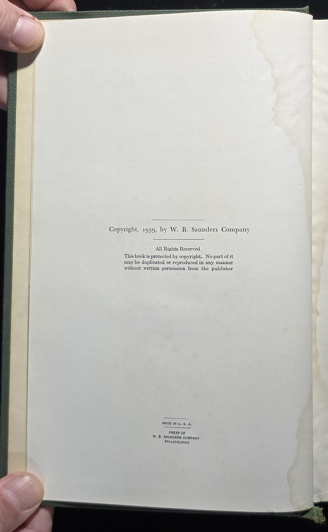 Despite the heavy water staining and worn exterior, this copy survived decades of handling and likely saw use in clinical or educational settings—perhaps passed through the hands of surgeons-in-training or wartime physicians.
