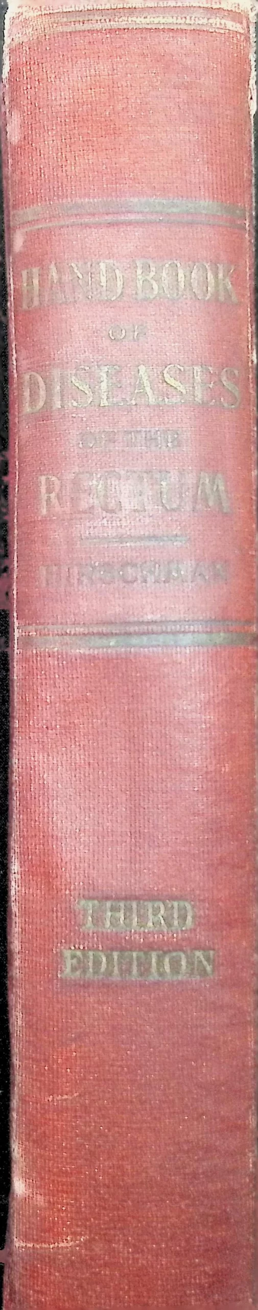 Spine and cover of 1921 medical textbook Handbook of Diseases of the Rectum by Hirschman.