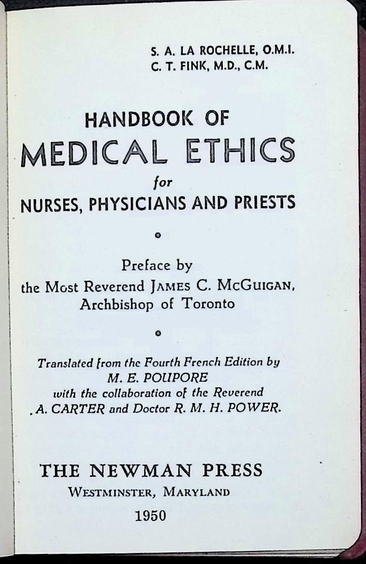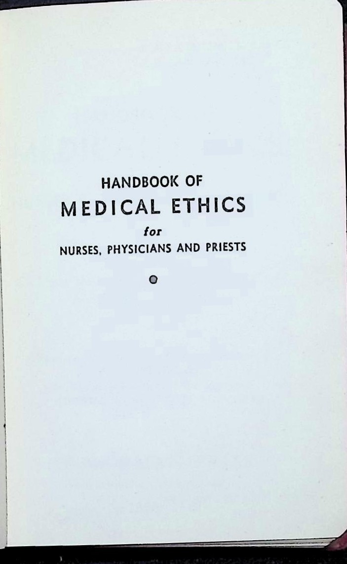 Handbook of Medical Ethics for Nurses, Physicians and Priests (1950)