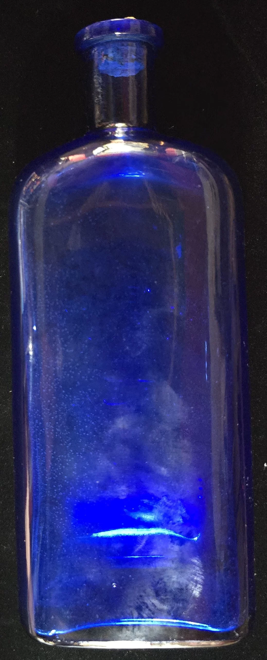 Cobalt glass was used both for aesthetics and to slow the degradation of light-sensitive ingredients.
