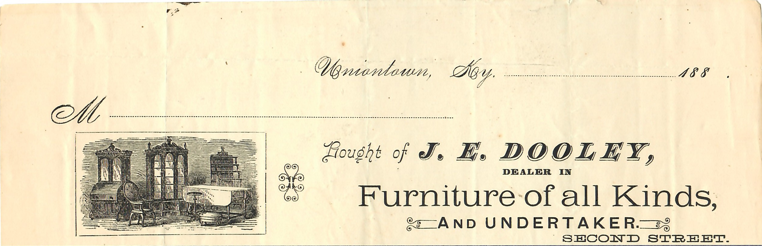 “Dealer in Furniture of All Kinds and Undertaker — Second Street, Uniontown, Ky.”