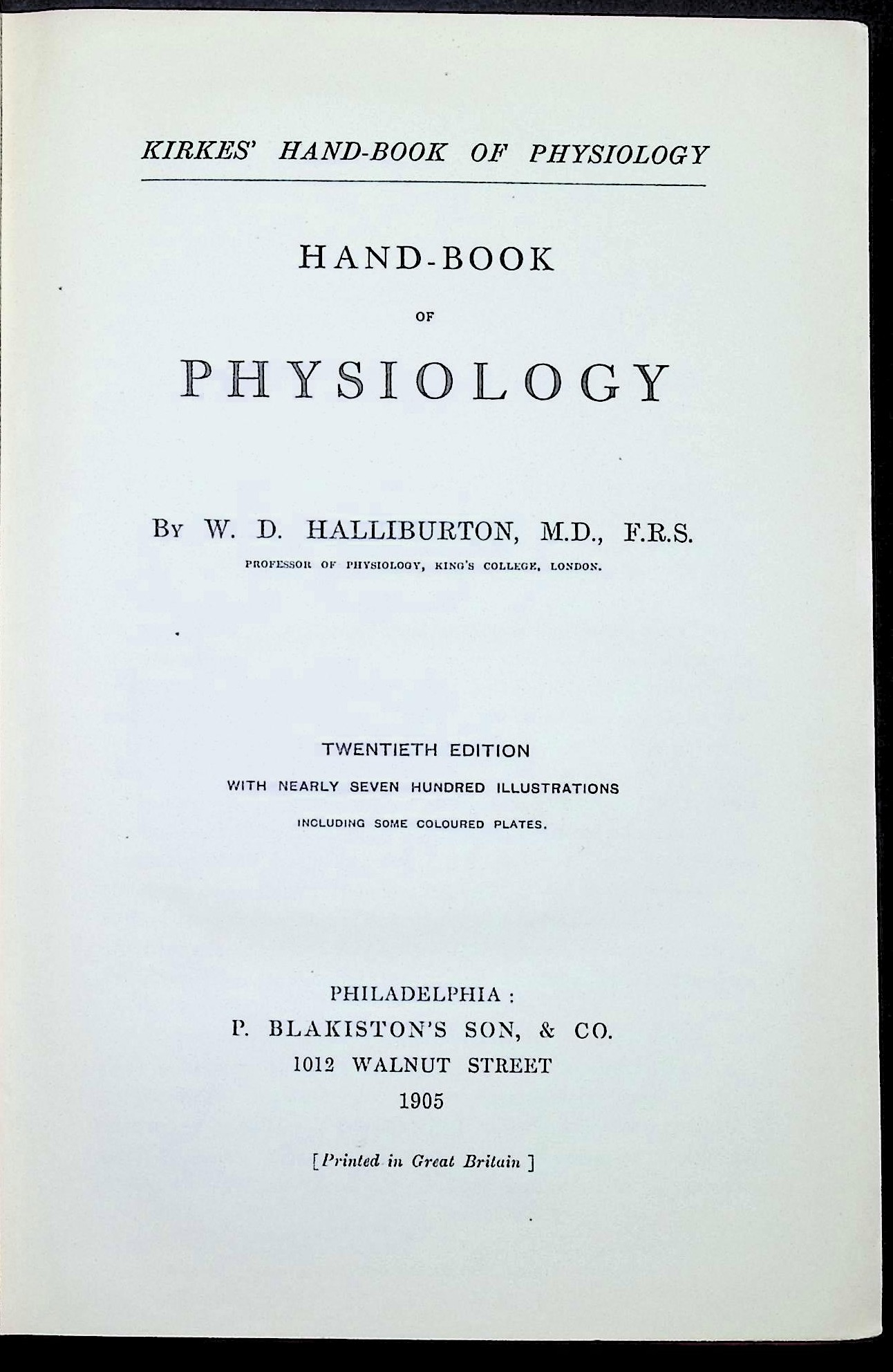 Kirke’s Hand-Book of Physiology (Twentieth Edition, 1905)