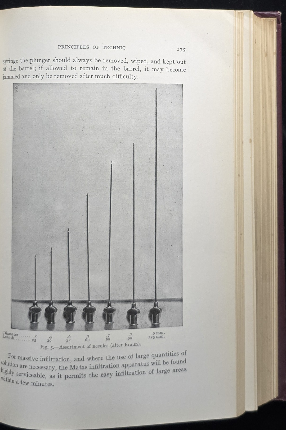 “For massive infiltration… the Matas infiltration apparatus will be found highly serviceable, as it permits the easy infiltration of large areas within a few minutes.” (p. 175)