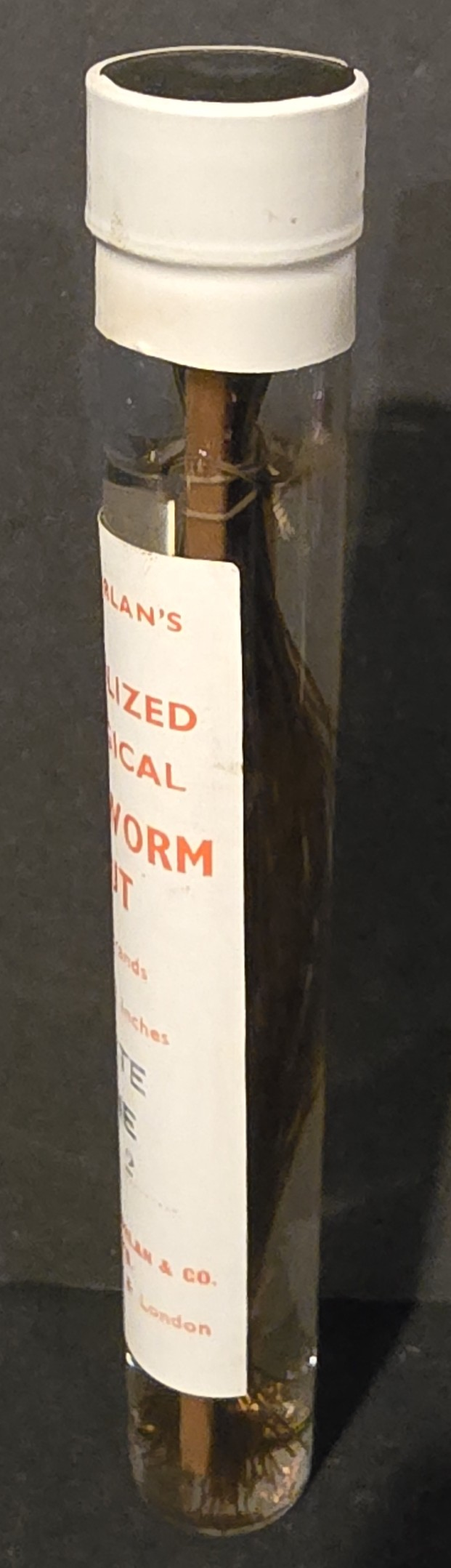 Suture materials rarely survive in their original packaging, especially in intact glass tubes. This piece preserves not only the sutures themselves but also the way sterile surgical materials were packaged and distributed to physicians during the early twentieth century.