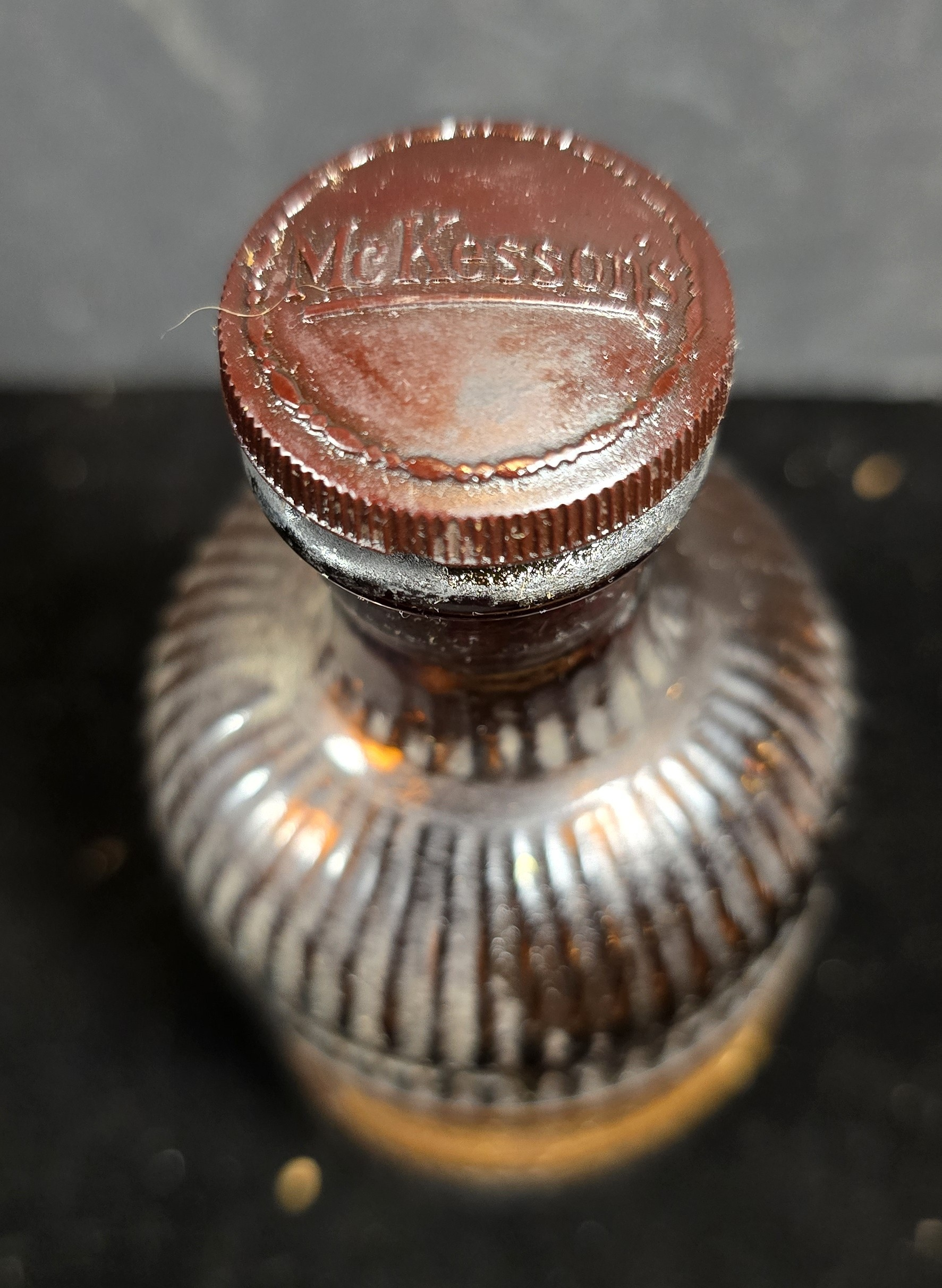 McKesson’s ribbed amber bottles are highly recognizable to collectors and were used for dozens of volatile or aromatic products.