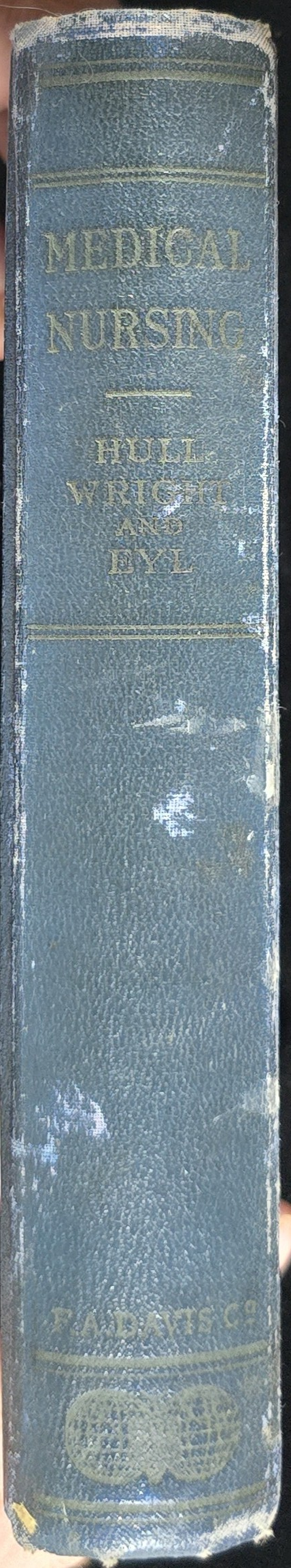 This professional nursing textbook, authored by Hull, Wright, and Eyl and published by F. A. Davis Company, represents the second edition of Medical Nursing, issued in the early 1940s. Designed for student and graduate nurses, the book provided systematic instruction in the recognition and care of diseases, preventive health measures, and the growing responsibilities of the nursing profession. Its structured organization reflects the movement to integrate medical science directly into nursing curricula.
