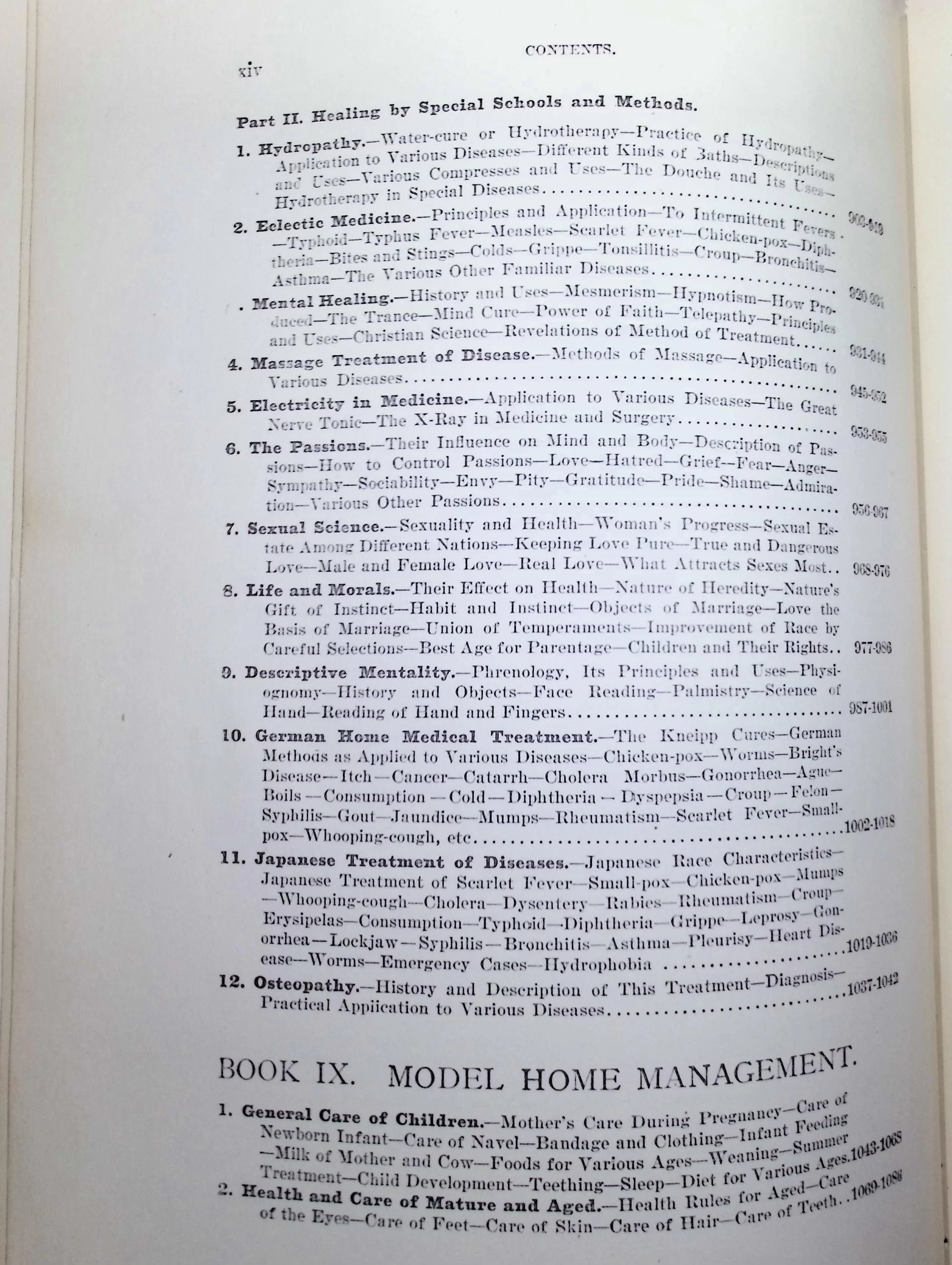 This edition also mirrors social views of the time—including chapters on “sexual science,” “descriptive mentality” (phrenology), “the passions,” and “electrotherapy”—which combined moral instruction with medical authority.
