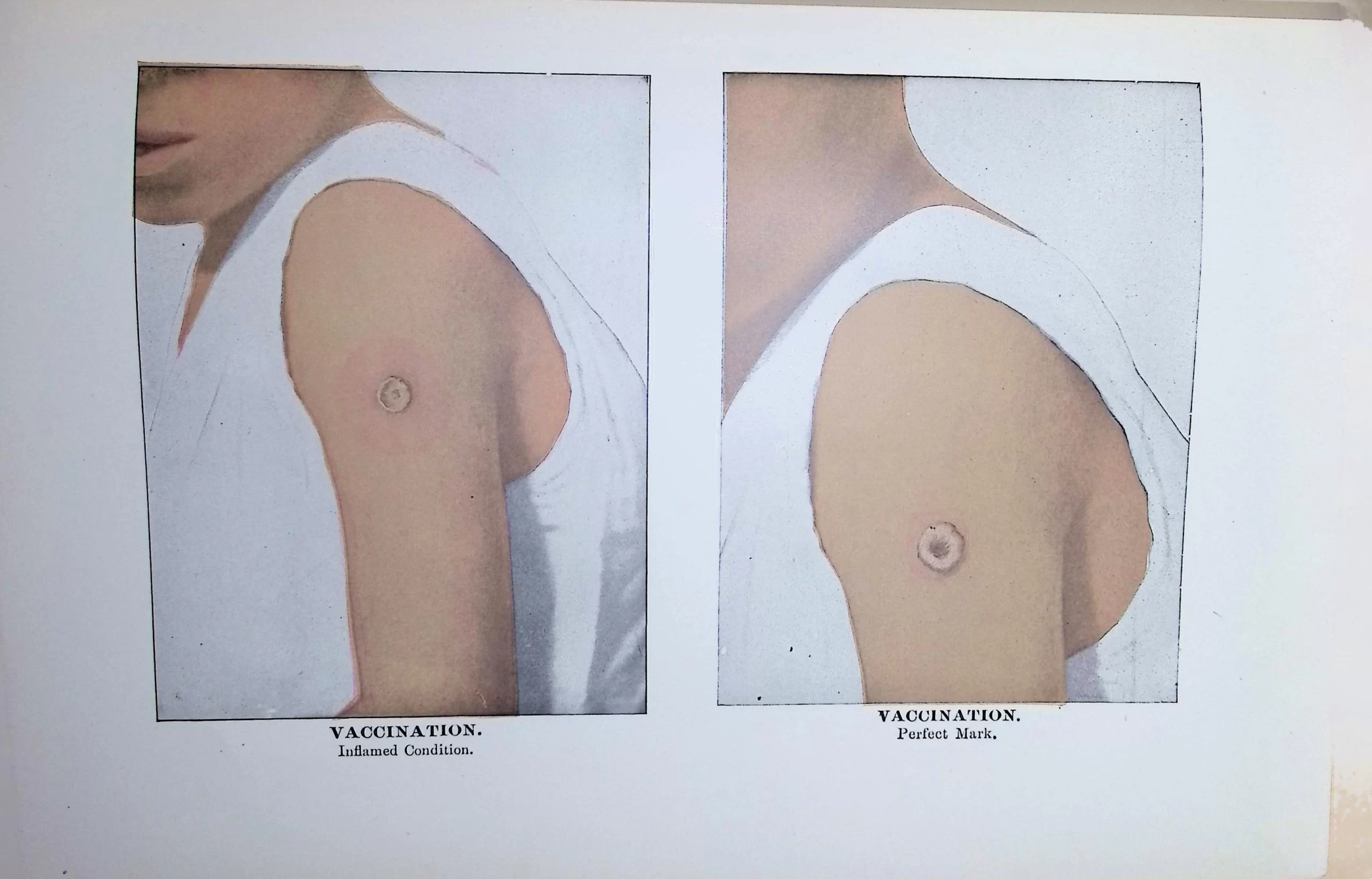 • Contains illustrations of early vaccination scars, detailed cross-sections of skin, and poetic verse about nutrition (“Pudding and beef make Britons fight”).