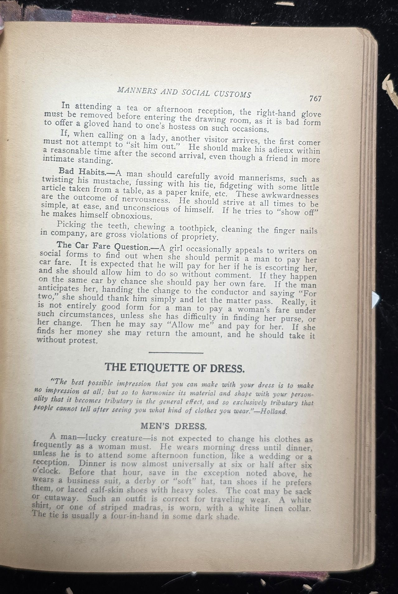 The book includes specific instructions on how a woman should act when a man insists on paying her streetcar fare.