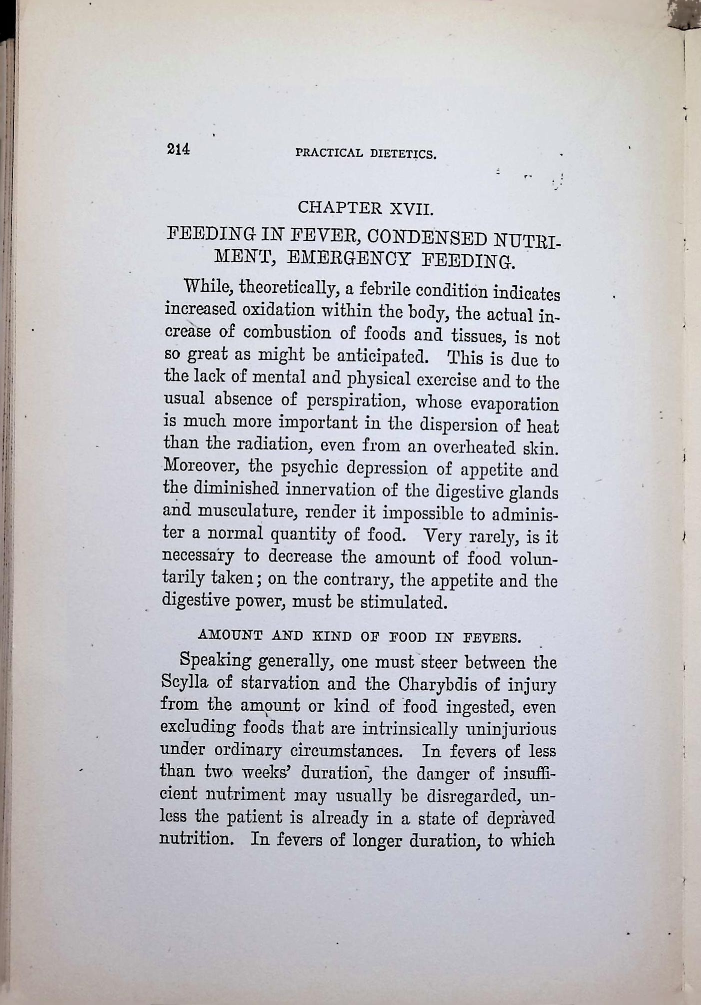 The chapter on feeding during fevers compares over-restricting food to navigating between “Scylla and Charybdis,” showcasing the author’s classical education and rhetorical style.