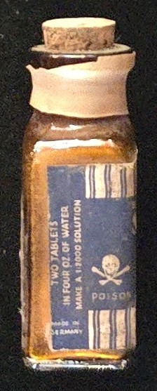 “Two tablets in four ounces of water make a 1:1000 solution.” — from the bottle label.
