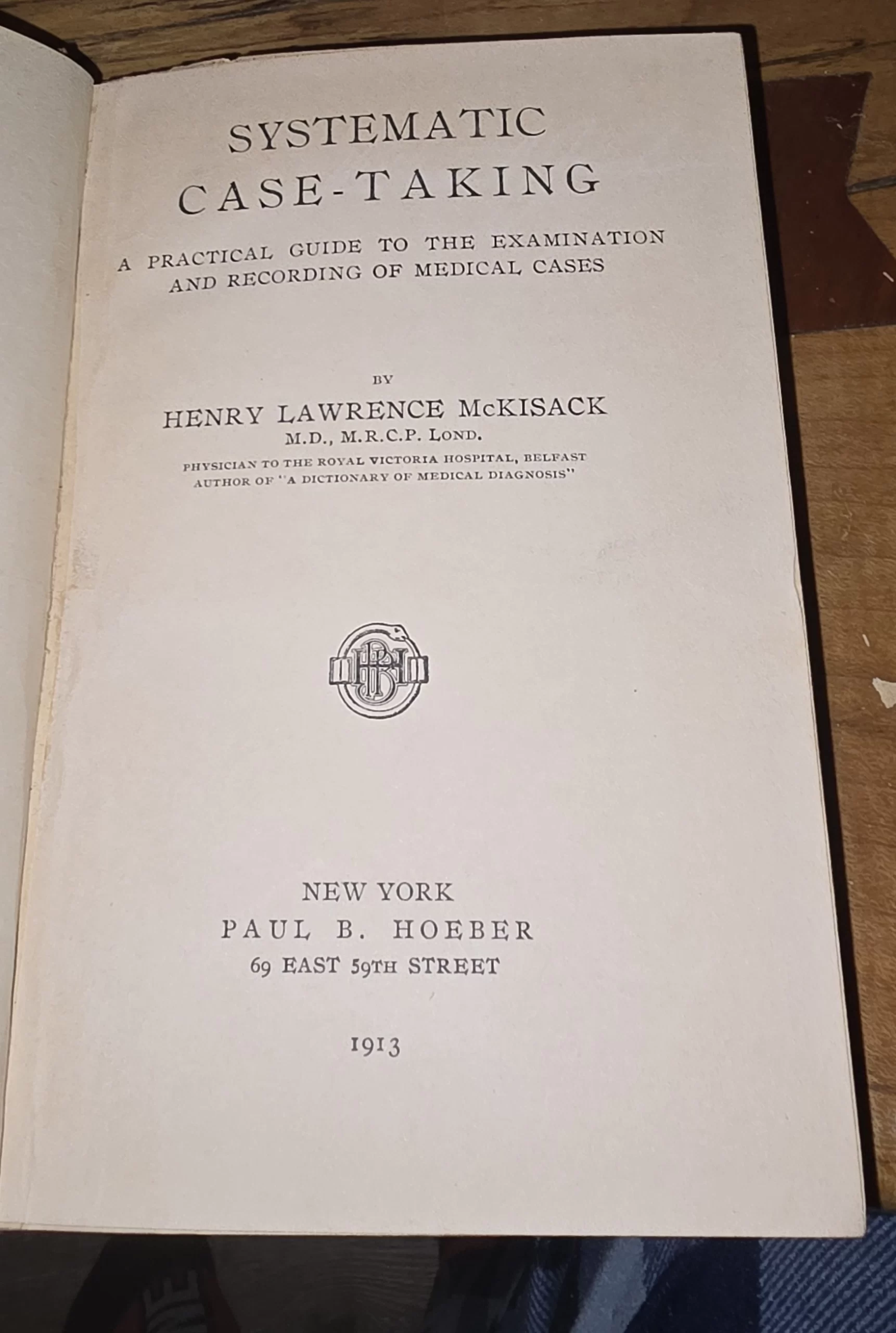 Published just before the First World War, Systematic Case-Taking reflects the priorities of pre-antibiotic medicine: detailed physical exams, careful histories, and intuitive diagnostics. McKisack, practicing in Belfast, was part of a generation of physicians who relied on precise documentation, listening skills, and pattern recognition—skills still fundamental today. The publisher, Paul B. Hoeber, was known for producing concise clinical guides for American practitioners, often based on European training models.