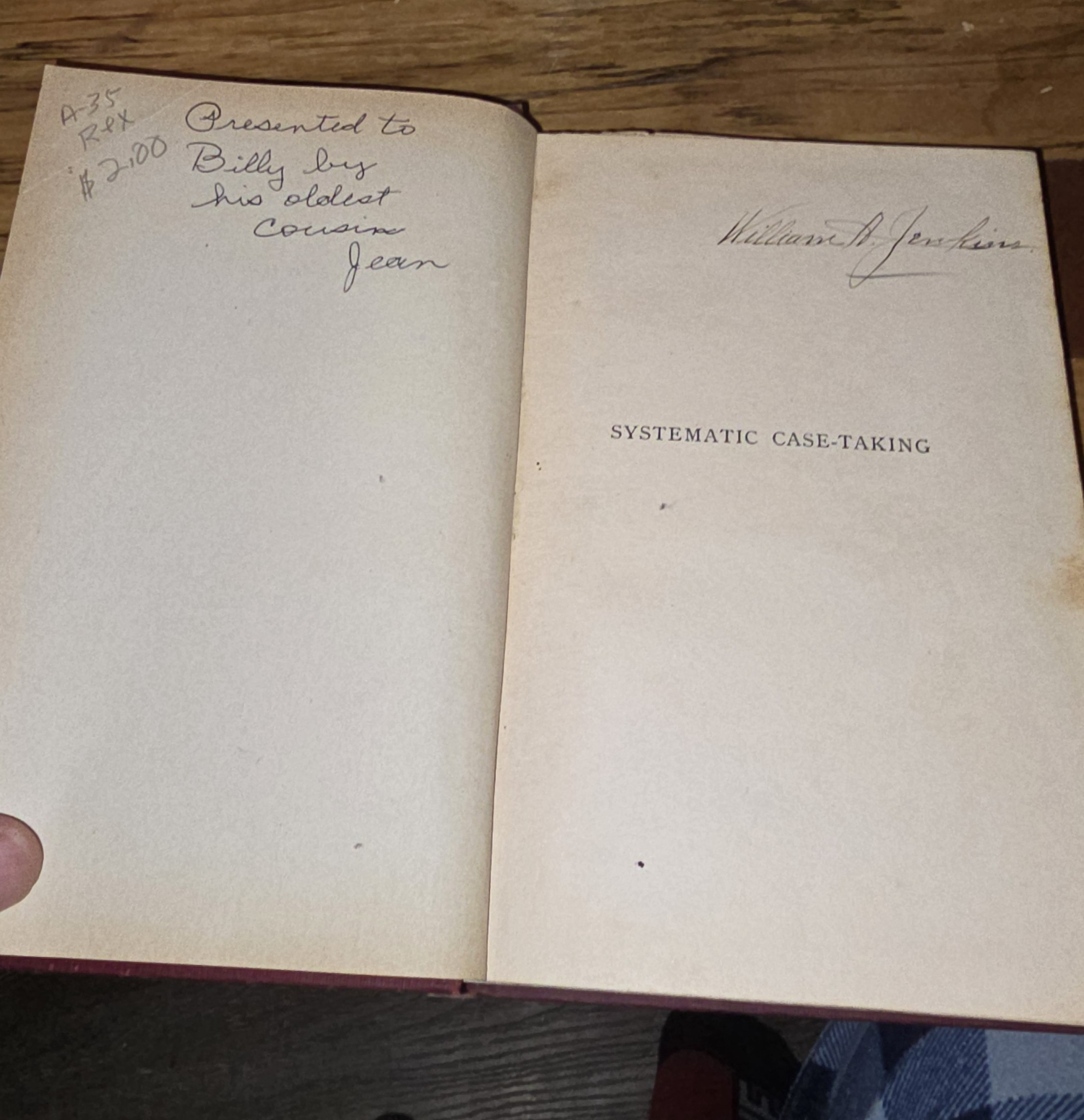 “Presented to Billy by his oldest cousin Jean”