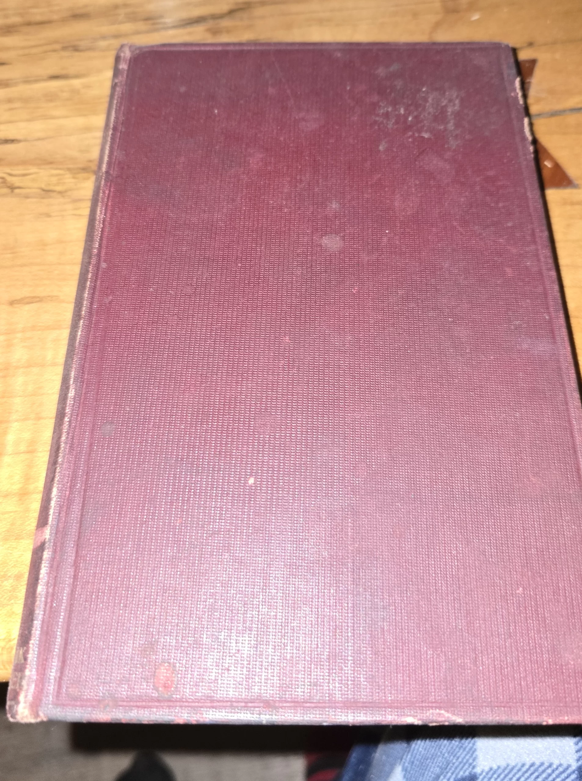 Binding is tight; cover shows minor edge wear, sun fading on spine, and light scuffing. Pages are toned with age, but text is clean and legible. Includes a handwritten ownership note: