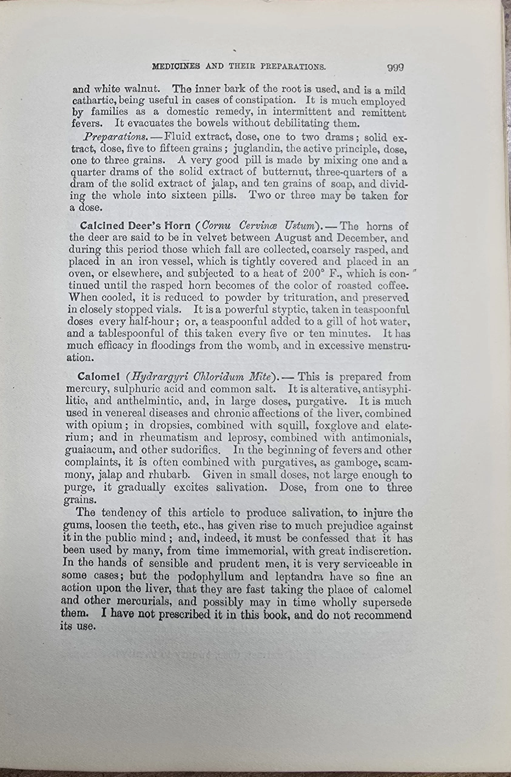 “Calomel is a violent and dangerous medicine. I have not prescribed it in this book, and do not recommend its use.”