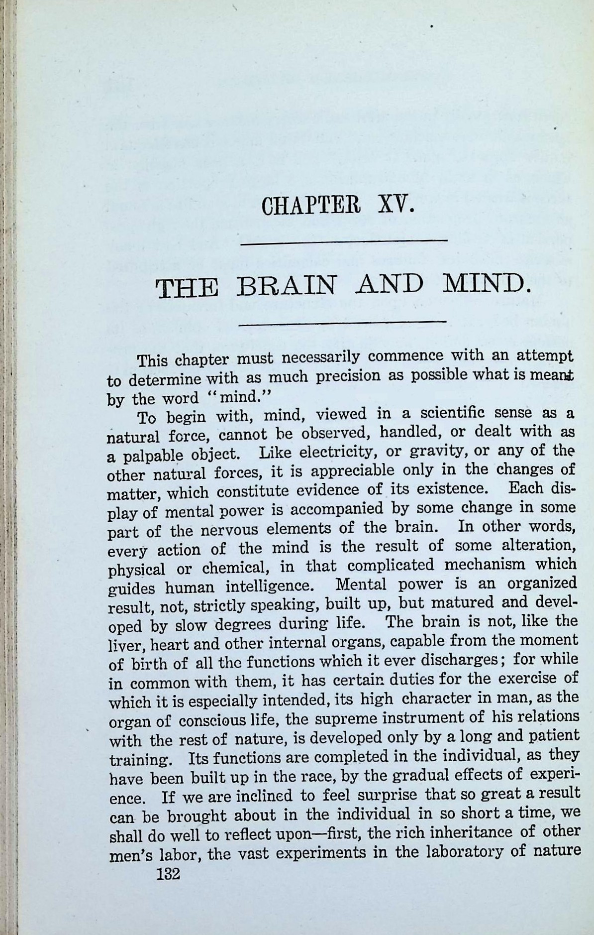 From Chapter XV: “Mental power is an organized result, not, strictly speaking, built up, but matured and developed by slow degrees during life… The supreme instrument of his relations with the rest of nature is developed only by a long and patient training.”