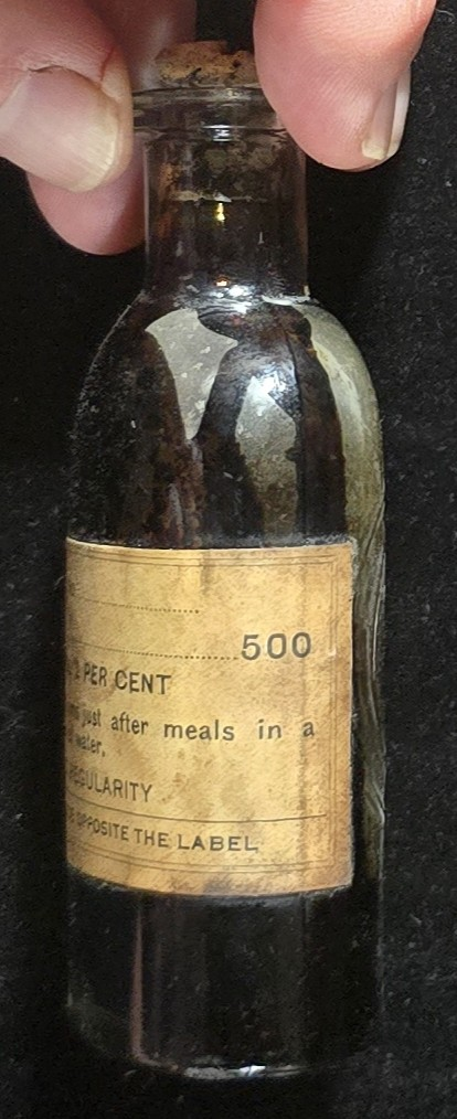 • The bottle’s instructions to “pour out on side opposite the label” were meant to preserve legibility and limit label damage from drips — a small but telling detail in old pharmacy etiquette.