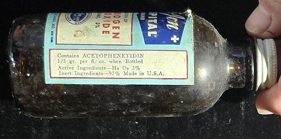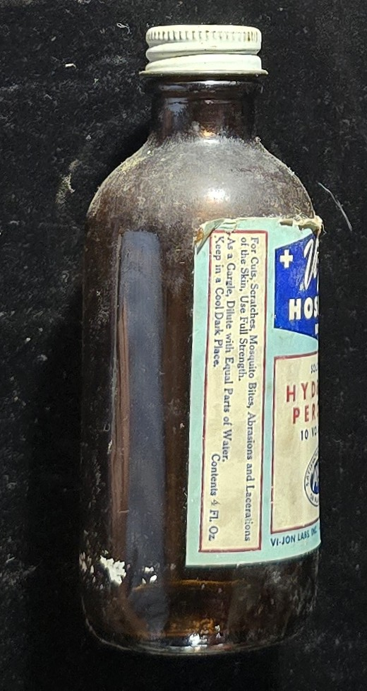 This Vi-Jon bottle represents a transitional era of home medical care—before modern over-the-counter antiseptics fully replaced early 20th-century chemical remedies. Its combination of peroxide and acetophenetidin speaks to both the scientific optimism and the regulatory looseness of its time. A poignant example of once-trusted remedies later deemed too dangerous for continued use.