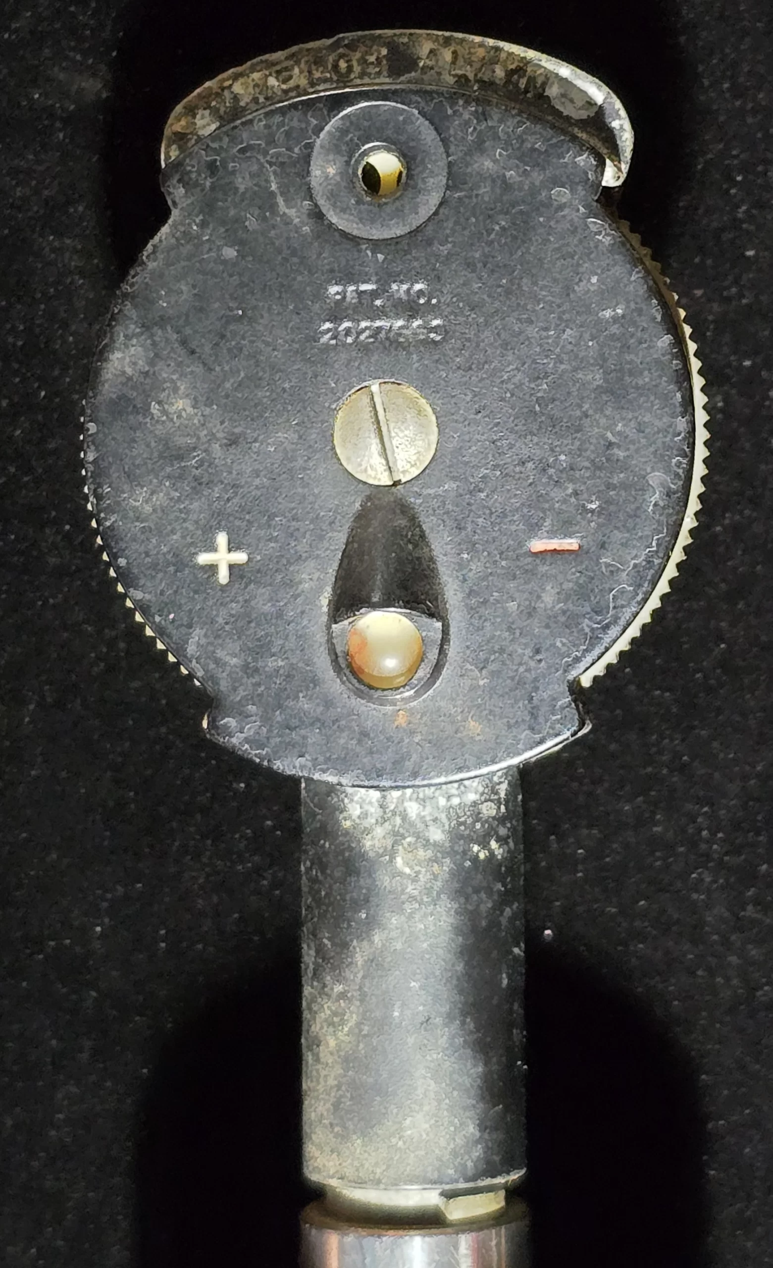 Front view of vintage Wappler No. 112 diagnostic handle with attached ophthalmoscope head