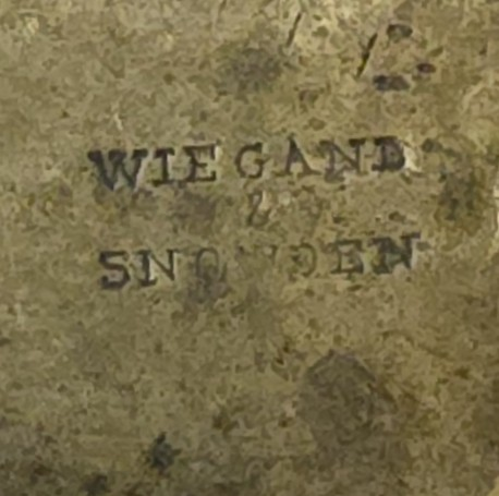 The maker’s stamp “WIEGAND & SNOWDEN” is visible on the body, confirming manufacture by the Philadelphia-based medical instrument firm active in the late 1800s.